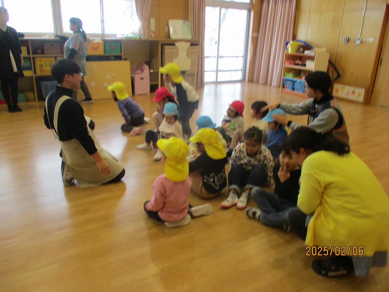 「そよかぜタイム」では,手と足を床に付けた鬼ごっこをしました。いつもと勝手が違うので,逃げる方も追いかける方も必死でした。